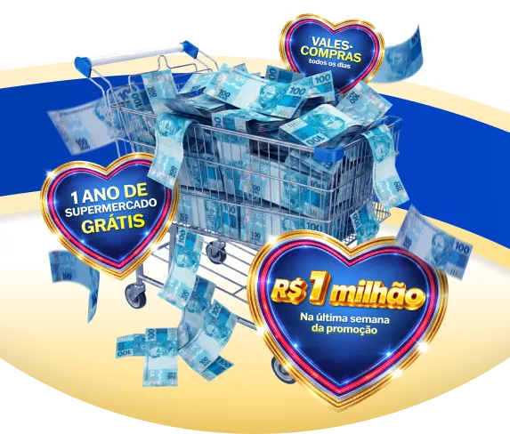 A cada R$ 50,00 em compras, você recebe 1 cupom para participar dos sorteios e concorrer a prêmios que podem mudar a sua vida.