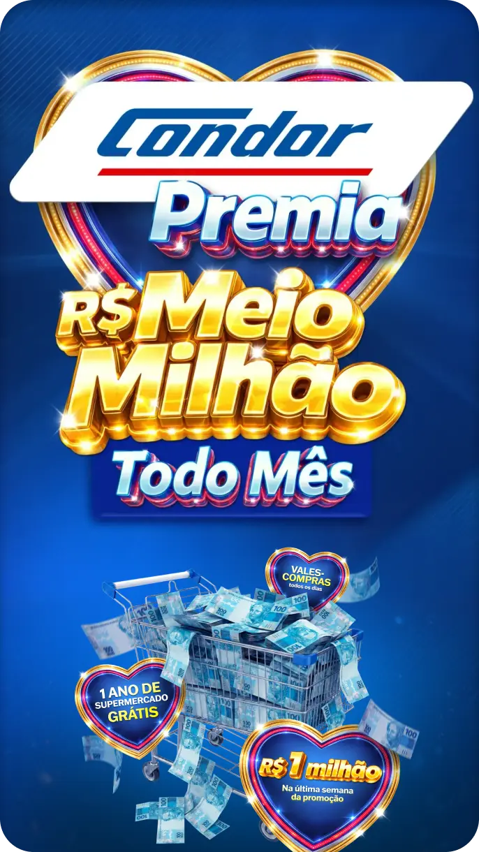 Na campanha Condor Premia, a cada R$ 50,00 em compras, o cliente recebe 1 cupom para participar dos sorteios diários, mensais e do grande prêmio final.